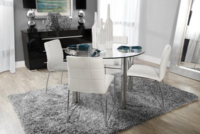 Dining table set, modern round glass kitchen table + 4 faux leather chairs white $474.99 $499.99 previous price $499.99 5% off 5% off previous price $499.99 5% off Indoor glass tables are perfect for adding a luxurious feel to any room. By karl home $ 259 99 Dining table set for 4,modern kitchen table and chairs for small space,round glass dining table+faux leather dining room chairs set of 5 pieces,easy assembly for home business (table+4 white chairs) 4.6 out of 5 stars. 79 l x 40 w x 30 h.